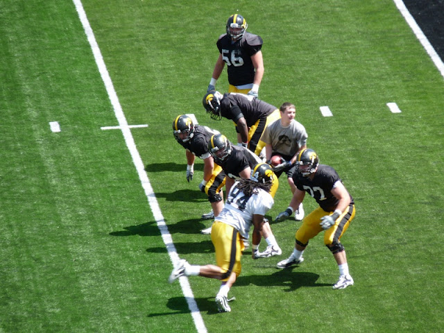 Ballard got by Zusevics for a sack. Klug also had a sack during the situation scrimmage. Other than that, though, the offensive line did a good job.