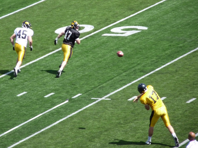 Here is a play from the 7-on-7 portion of scrimmage. I'd say defense "won" this portion. They did give up some passes on shorter routes, but had really good coverage down the field.